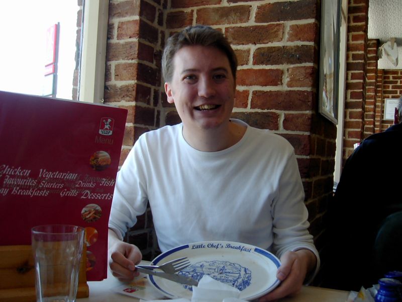 13:23:50 On the way to Brighton, we made a stop off at a Little Chef. I think it may have been Chie's first time to eat at one of these fine establishments. She was apparently rather taken with the plates. |