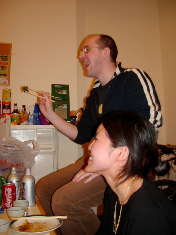 02:07:01 A while later, Leon and Yukari also had to sample the greasy cheesey goodness. Now then, confusingly, although the time says just after 2 o' clock, I think it is now officially just after 3, what with the clocks going forward and everything. To make matters even more confusing, there's a gap of an hour between this and the previous picture... |