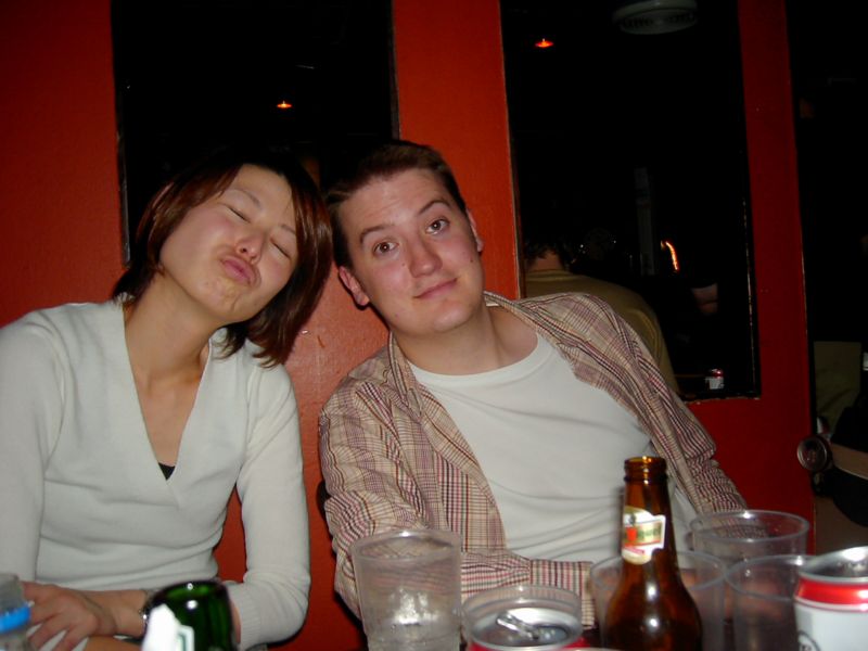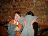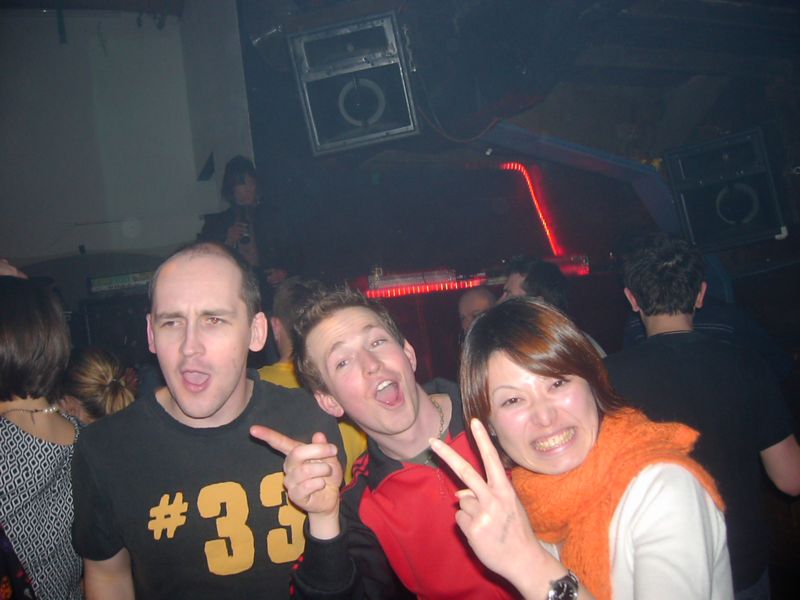 21:11:50 Right then, after a fascinating taxi ride including a presentation about cutting edge minicab navigation technology by our driver, here we are in the Ark Bar. Chie seems to be hiding her face already. |