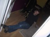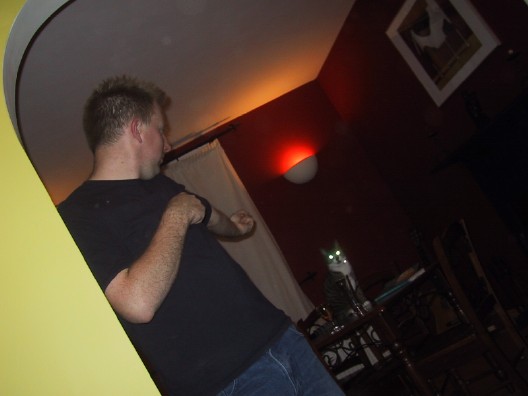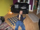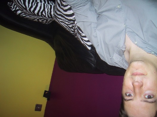 Rowanboy pretending to play the swanky new zebra thing. Air guitar at its best? |