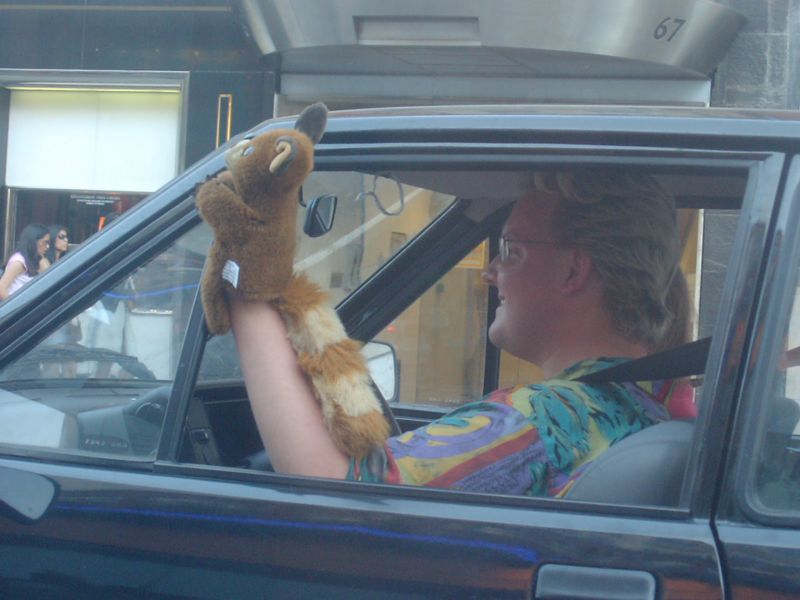 19:17:41 A man in the next lane to us had a hand puppet on for some strange reason, although we just missed it in this picture... |
