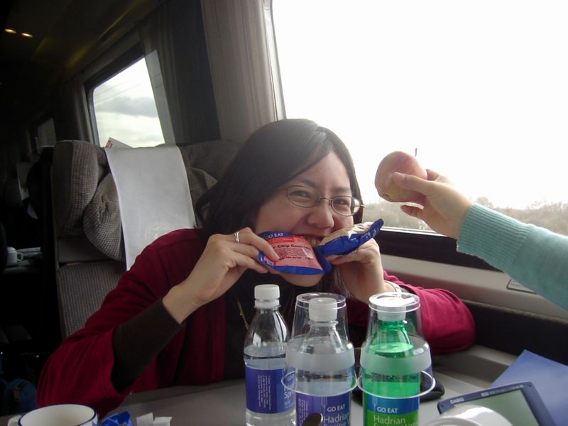 12:50:02 Lunch, served at our seats, and surprisingly good for train food. I guess that's the difference of being in first class! |