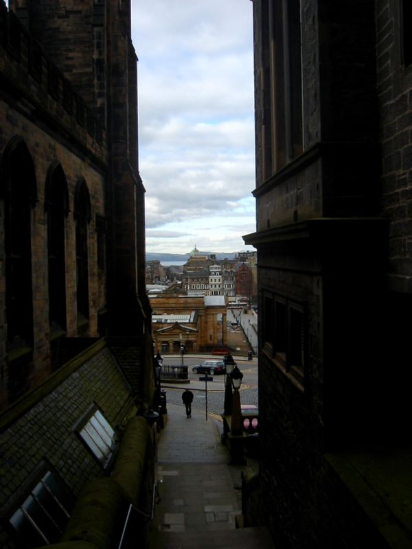 14:49:51 After lunch we split off so Chie and Yuka could get some cakes and I could go and get our luggage. This seemed like a fair division of labour. On the way back to our hotel I took this final picture of Edinburgh, as seen through Milne's Close, which I had become rather fond of. |