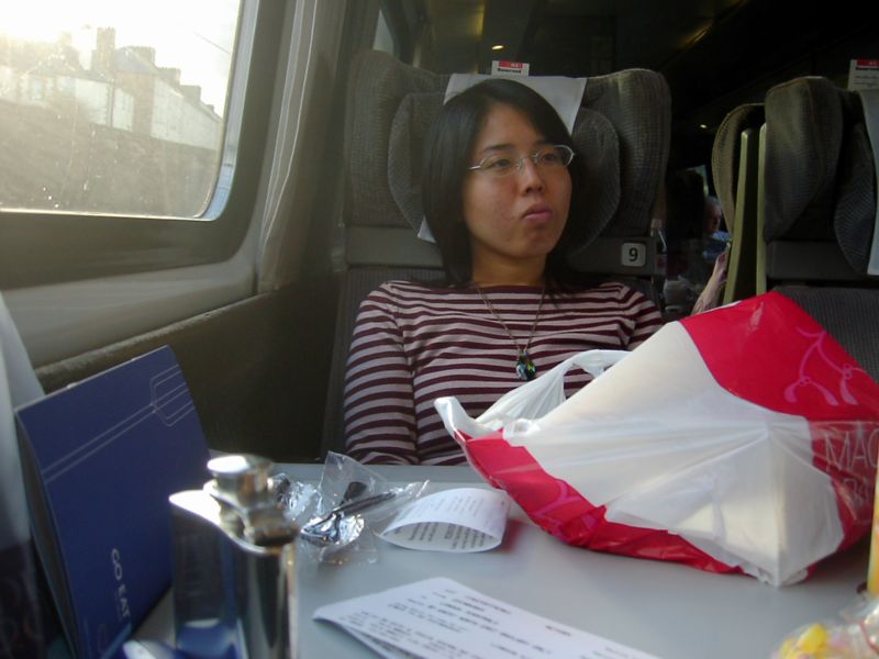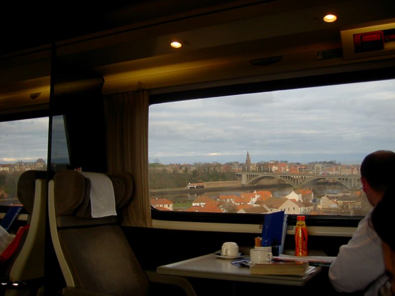 11:36:21 Not long after boarding our train at King's Cross. We'd got first class tickets, and I guess we're just taking a moment here to appreciate that fact. |