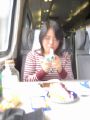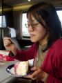 16:14:55 Chie enjoying a cake purchased in Edinburgh's Harvey Nichols. |