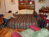 01:19:21 Lorenzo and Chie search for the cat, who has gone under the bed again. |