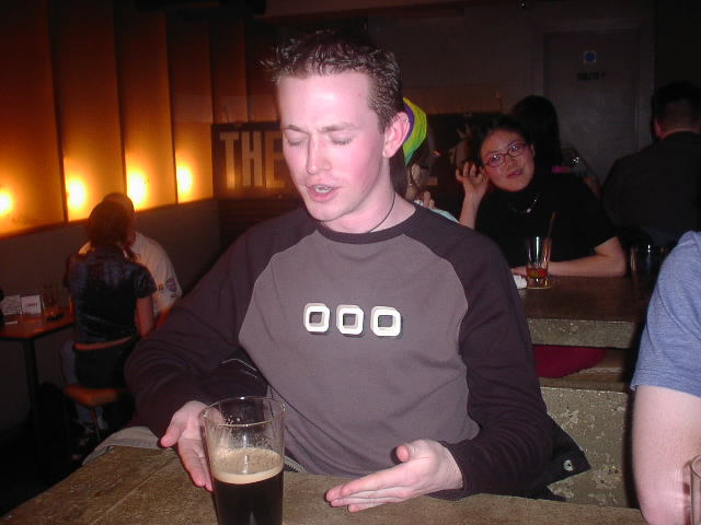 19:40:23: Cowering behind a pint of Guinness, not unusually.