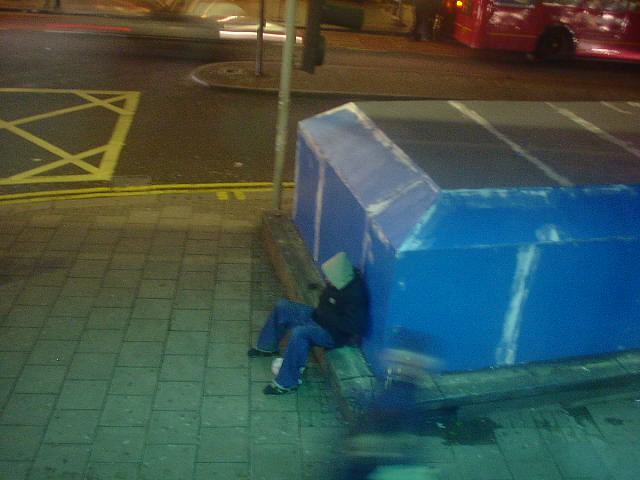 22:52:16: Strange guy sitting outside the window on a strange blue thing.