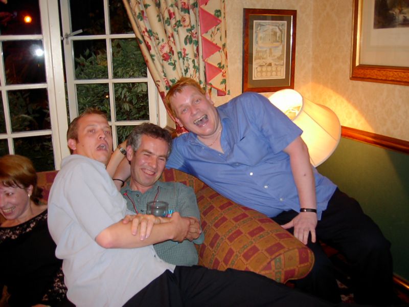 23:26:21 A nice shot of the boys. Very pleased with this. Barry has a hint of Yuppie (yuppy?) about him, and Mike's looking particularly cheeky here. |