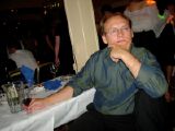 22:23:38 Here's Norman, who, along with Gordon, very kindly supplied the wine for our table. To his right is his wife Sarah chatting to birthday boy George. You can just about see George's balloons here. |
