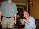 22:35:43 Stewart, just visible on the left hand side here, also following suite, or should I say following shirt. I was trying to get a picture of Russ and Carrie here, but Carrie is hiding rather effectively behind Garry. I think you can just about make out a bit of her nose between Garry's right ear and shoulder. |