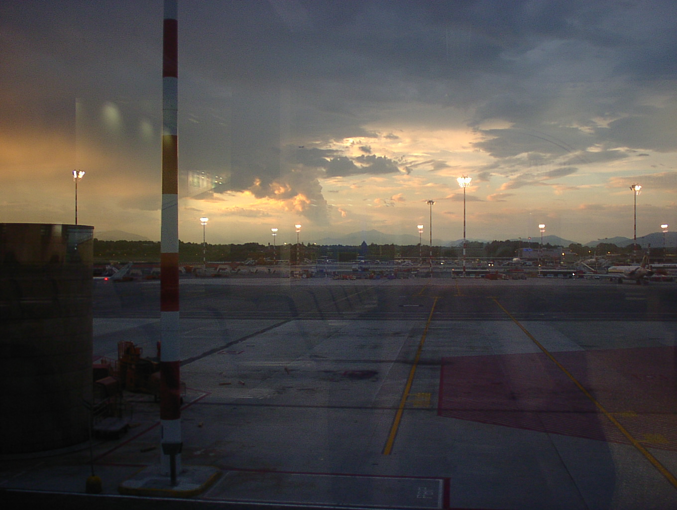 a nice view of the sunset in the airport.