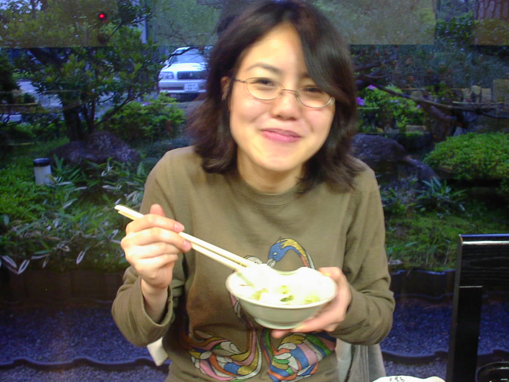 18:15. Chie managing quite spectacularly to hide behind a pair of chopsticks. |