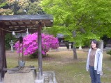 19:57. Chie consulting her guidebook in front of the gates to Mariyama park. I think we ended up going back to Shukuboh shortly after this. |