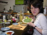 19:57. Chie with a plate of Konyaku (devil's tongue), which is often used as a vegetarian alternative to Sashimi. |