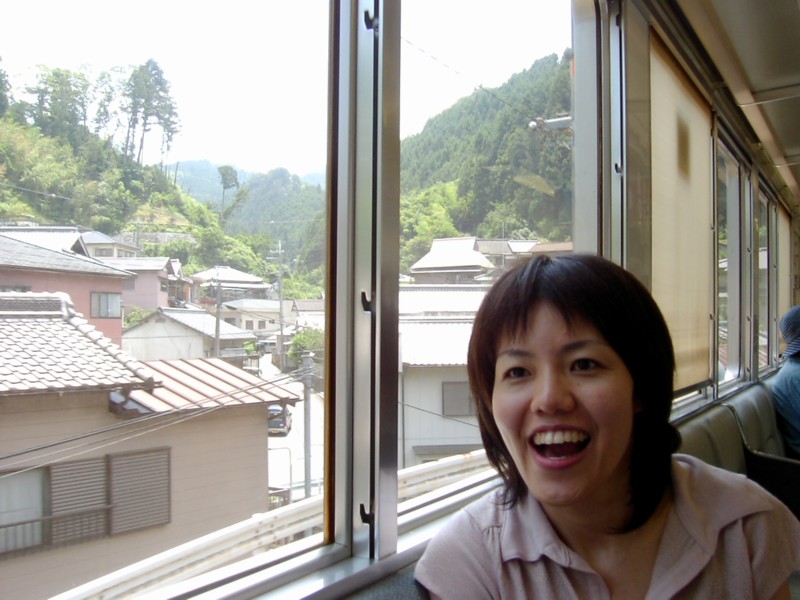 The final bit of the journey was very steep, so had to be done on this train which I called a rack railway, but Chie called a cable car.