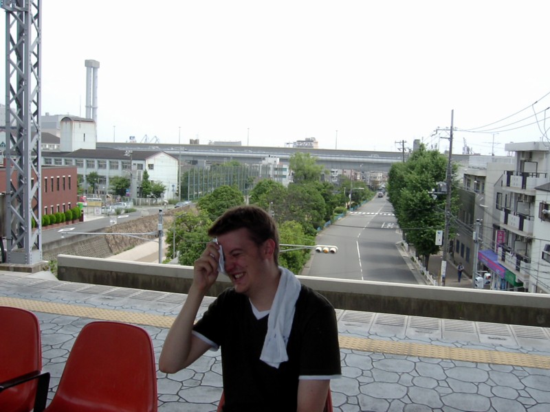 This is me suffering a bit from the heat at Oishi, the station nearest to the Sawanotsuru sakagura.