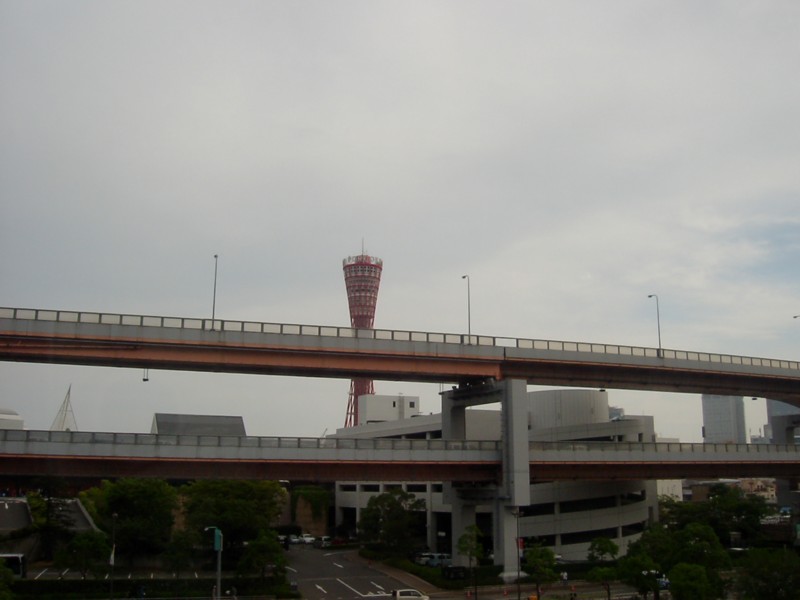 A not-that-grat picture of a famous Kobe landmark - the Port Tower - obscured by a couple of roads.