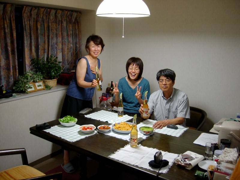 Back at the flat, loater on that evening. I'm sat in my usual position, messing about with my PC, whilst Chie's Dad looks on.