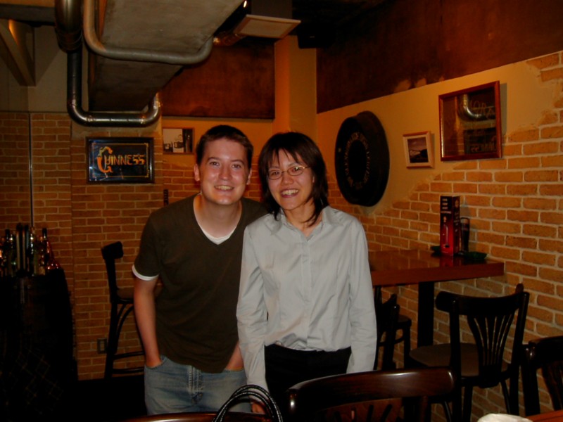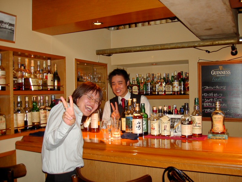 Chie and the guy behind the bar in Quercus.