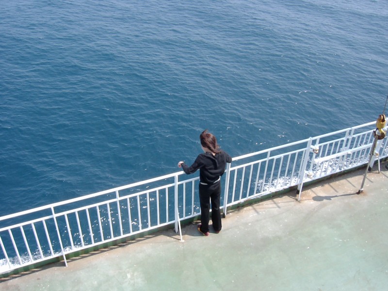 Chie gazing at the lovely blue sea.