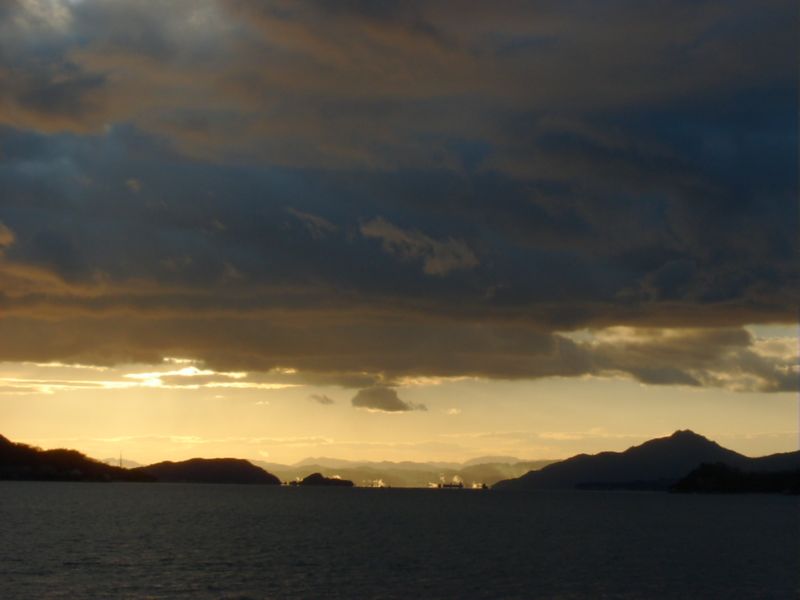 16:28:49 I like the layered effect of the mountains on the horizon in the middle of this picture, and the way the smoke and steam from the ships is highlighted by the sun.