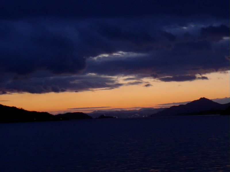 17:41:25 After getting off the ferry I got this fairly pleasing shot using the tripod of the harbour lights and the last glowing remnants of the sunset.