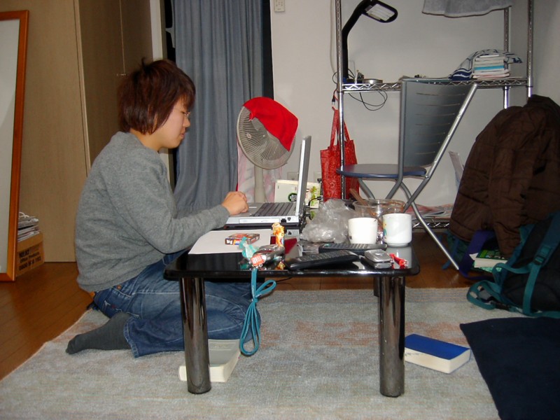 18:13:41 Mostly we had a very lazy day today, and I spent the majority of it trying to sleep off my jet lag. In the afternoon, we spent a while trying to fix Kana's PC. Here's Kana using her now fixed laptop. |