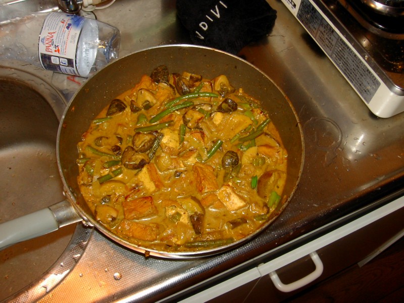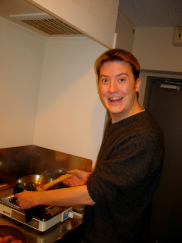 21:58:50 Tonight it was my turn to cook, so I decided to make something traditionally English - curry. Here's me cooking very enthusiastically in Kana's kitchen. |