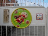 14:29:16 Anpanman, on the gates of a nursery school. Anpan is Japanese for bread filled with Anko - red bean paste. Thus here we have a somewhat unconventional superhero, constructed from bread and beans.