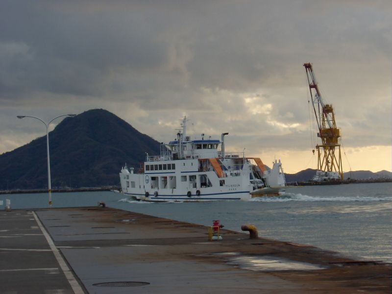 17:05:33 Well, we wanted to get back to Hiroshima, so we made it a flying visit. Here's our ride home coming into the little harbour on Etajima. |