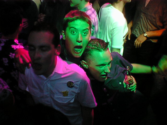 Must be closing time now, and almost instantly the bouncers are coming round trying tog et us to leave.