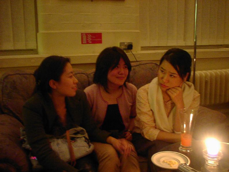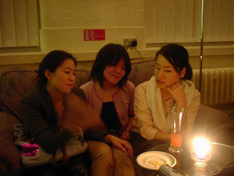 22:28:46 Erina, Chie and Kanako, all looking a bit serious, sitting on a sofa in the kind of common room place in Gyosei, which had been turned into a lounge bar, complete with cocktails and a piano player. |