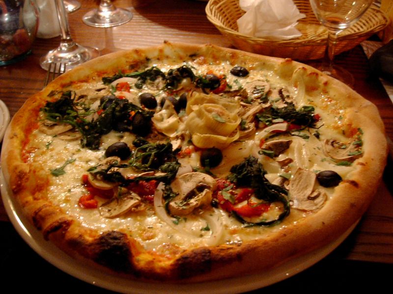21:34:53 My pizza. Something like a vegetariana I imagine. Jolly nice it was too. So nice that I later stored some of it temporarily on a roof elsewhere in Pangbourne. |