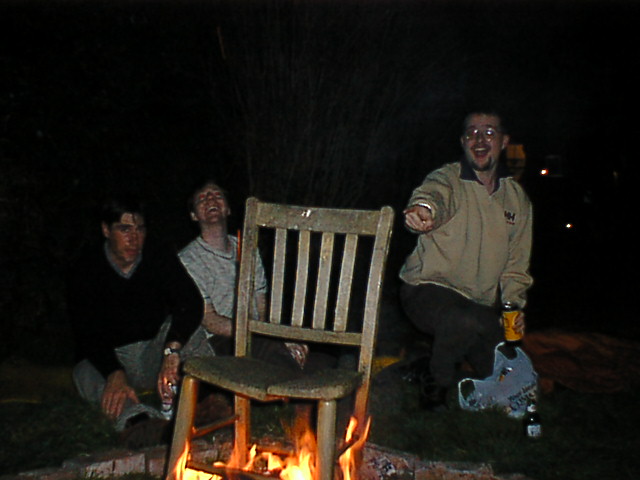 Here are some (actually quite a lot of) pictures from my 23rd birthday party, in my back garden, on the evening of Wednesday 15th March, 2000. The first few guests arrived around 8:30pm and the last few left around 7:30am(!), so in total about 11 hours of burning things, drinking stuff, and talking rubbish ensued.
