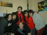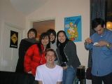 21:17:08 The girls arrive! From left to right, Masako, Kanako, Chie and Erina. I'm kneeling down at the front, and James appears to be fixing my doorbell. Or at least trying to. |