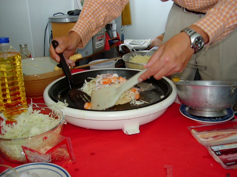 Some of Chie's friends come round to our flat for okonomiyaki (Japanese pancakes) on Saturday 6th September 2003.