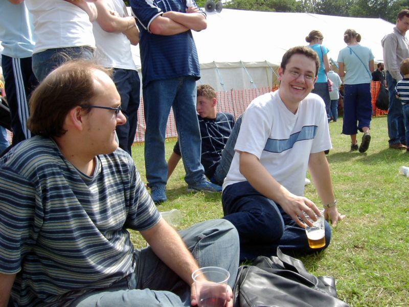15:35:06 Kevin and Simon enjoying some warm murky real ale out of a plastic pint glass. Oh, the joys of summer. |