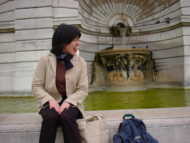 14:23:14 Chie looking very sweet in front of the fountain. |