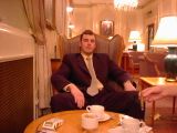 21:55:45 After dinner, having retired to the Cowdray lounge, Rob reads something or other, whilst having coffee. |