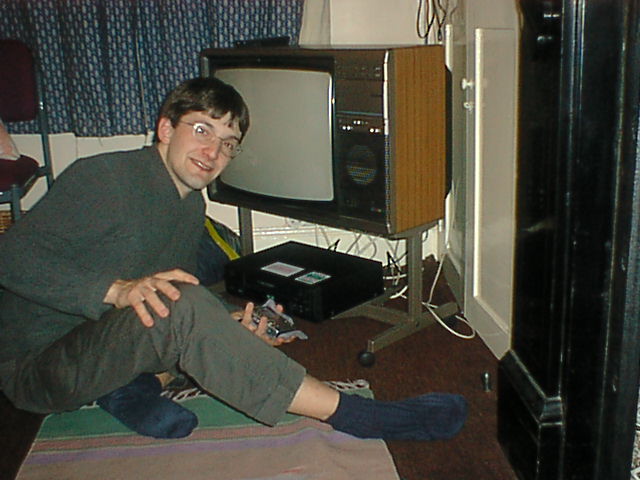 03:11:26 Simon seems to be wondering if he is able to insert this into the VCR. Hmmm... |