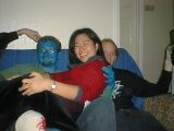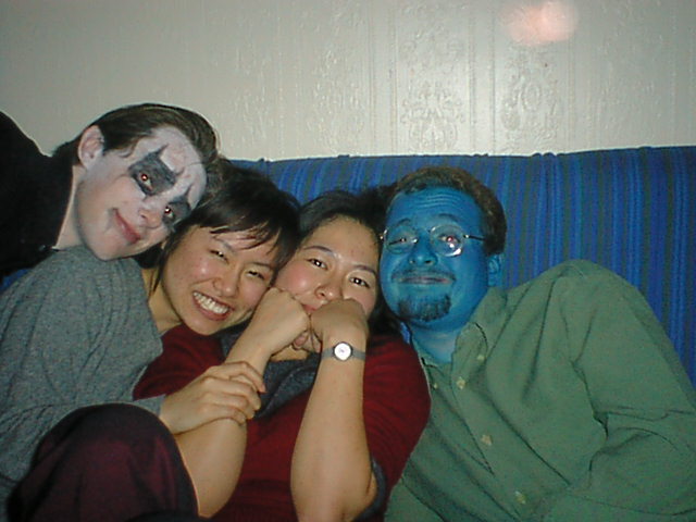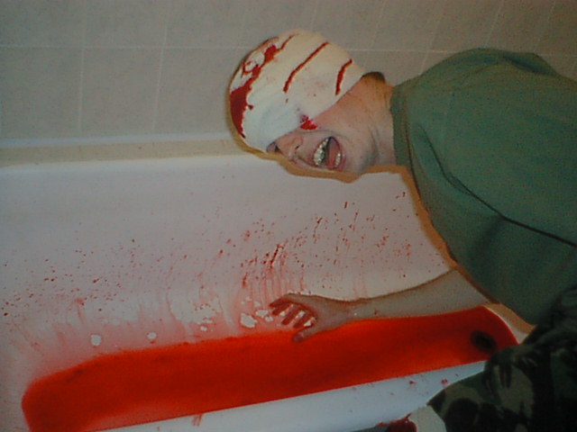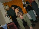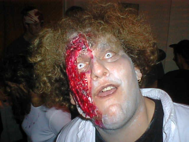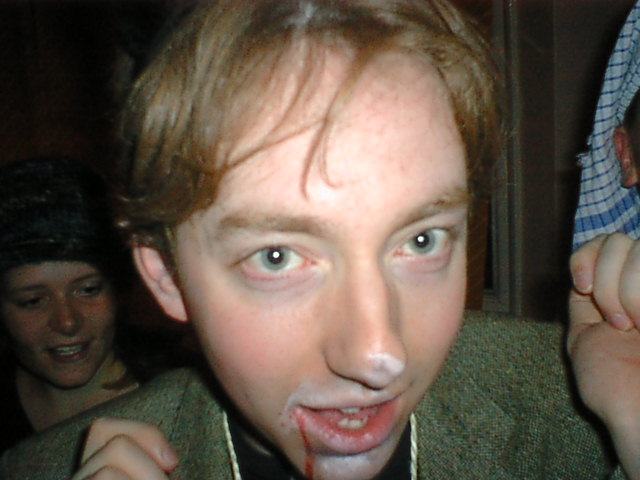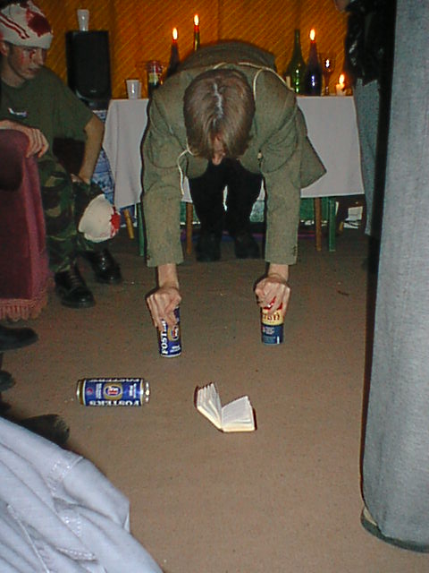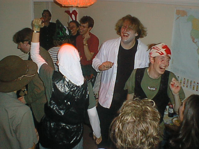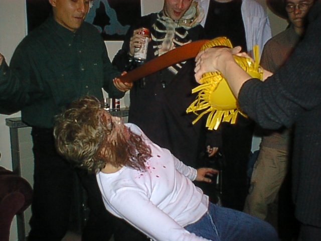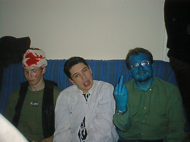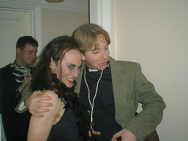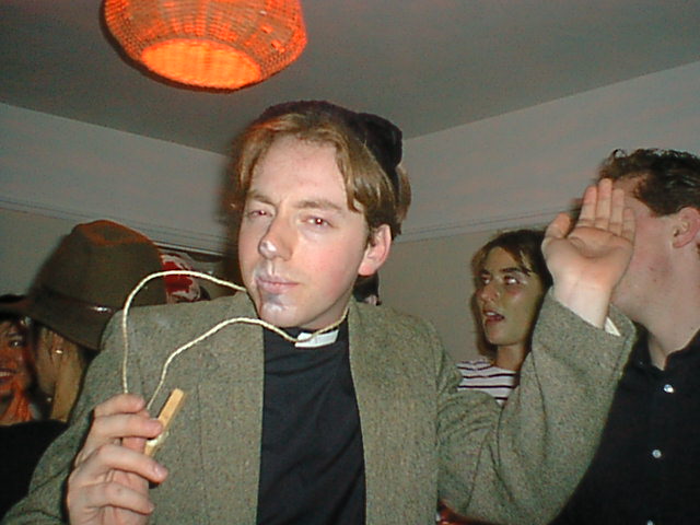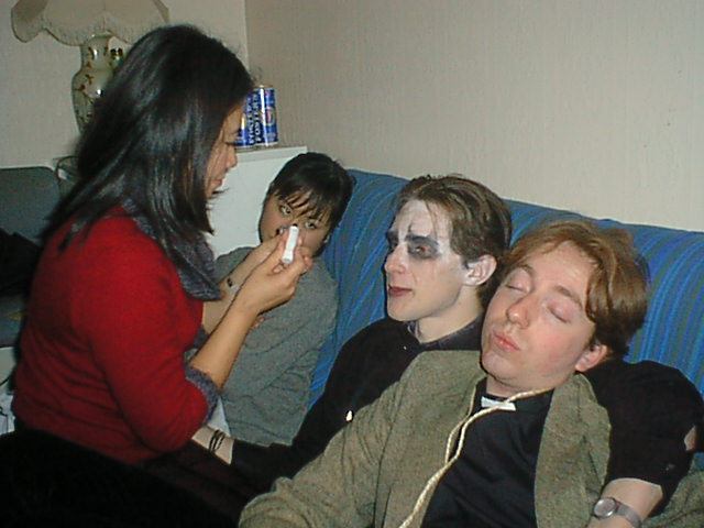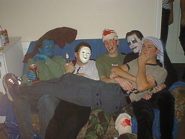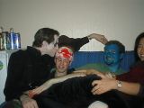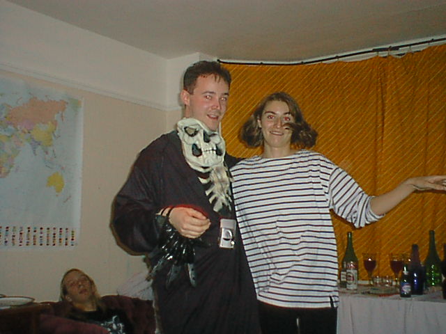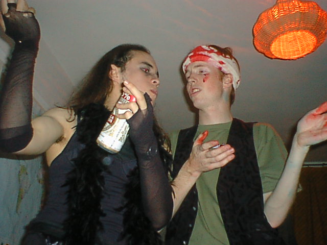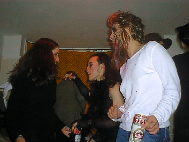 These are the pictures, taken by John, of the Halloween party at Stanhope Road on October 30th (yea OK so it was a day early) 1999. Many of these pictures are just plain out of order and may offend. Sorry, and all that. Some of them include terrible photographic skills. Plus you may notice this site isn't too over the top on its presentation. Well I was trying to get it done as fast as possible. If it isn't obvious, clicking on the little images will show you a full size version, although in some cases this is not advisable, especially if you are of a nervous disposition.