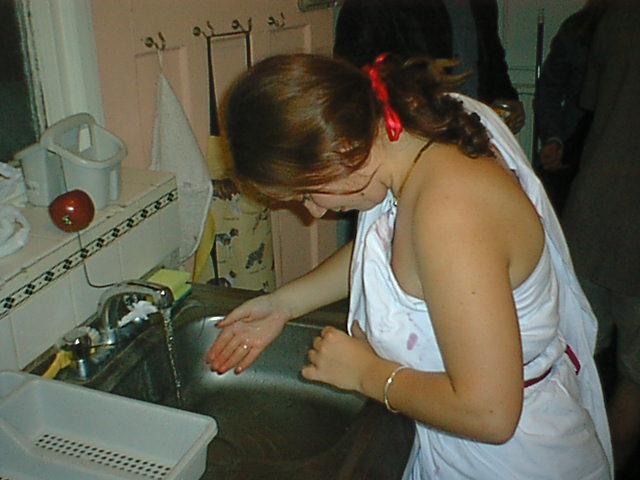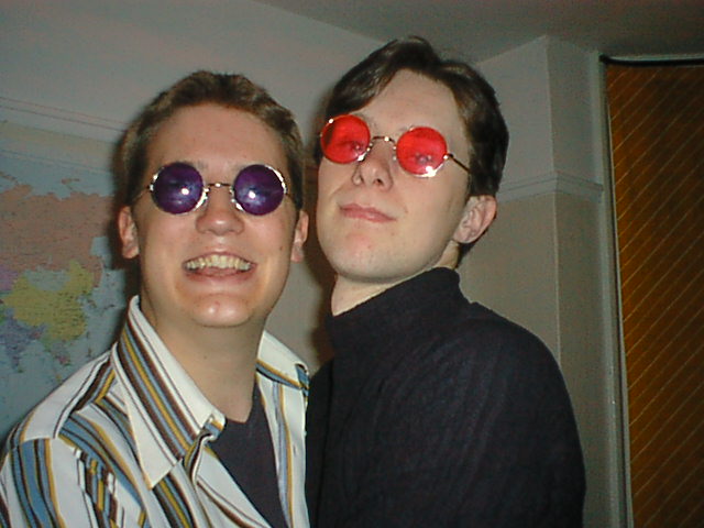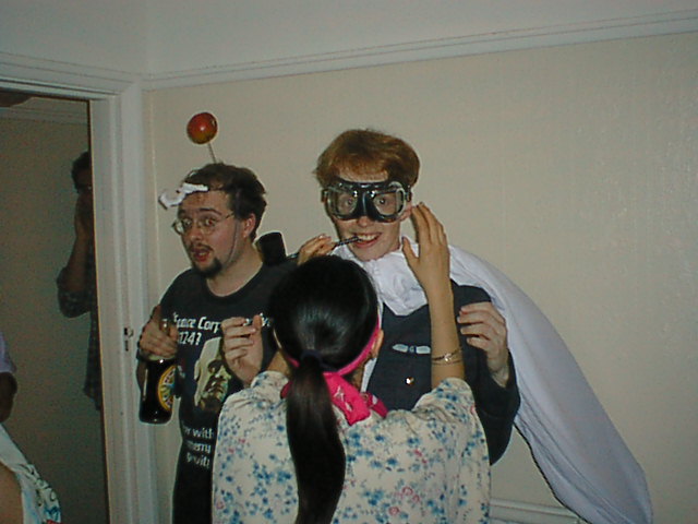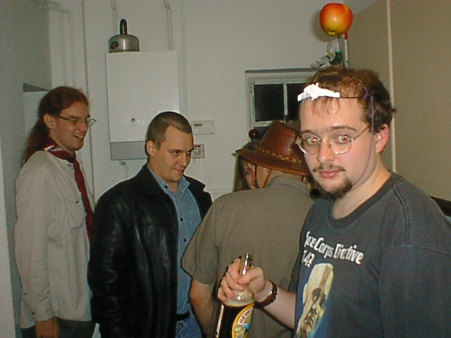 Right, so to explain, this was the second party at Stanhope Road (Mark, Anthony, Muriel and Sam's house), which occured on Friday 26th May 2000. The theme was along the lines of anyone influential from the last 2000 years, which made it just about as broad as possible really. These pictures were taken mostly by John (that's me that is), although other drunken guest photographers may have taken some of the crapper ones. I didn't get there until after 11, due to being crap and disorganised. I stayed until about 4 (apparently), at which point the party had pretty much finished (again, apparently), but after 3 I was way too drunk to take pictures or do just about anything else really, come to think of it.