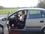 15:43:17 Chie and I had planned to get a bite to eat on the way to the wedding, but didn't have time. So here we are in a lay-by near where the reception was held, fitting in a sneaky sandwich. |