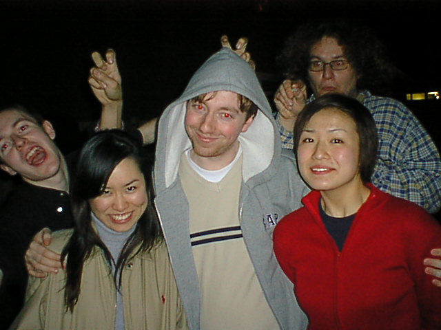 23:41:06 Mark standard pose #5. Plus Masako (again, maybe that's not really her name) and Chie. Jim's face here is quite superb. |