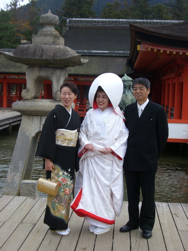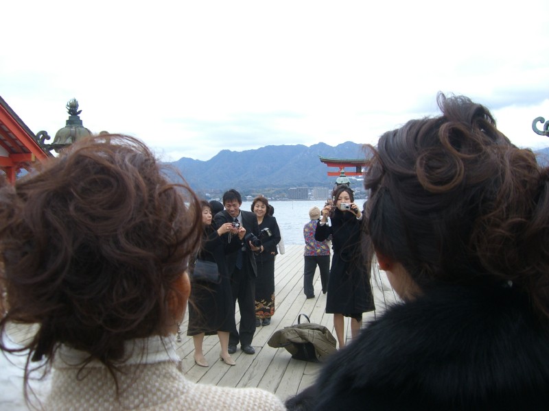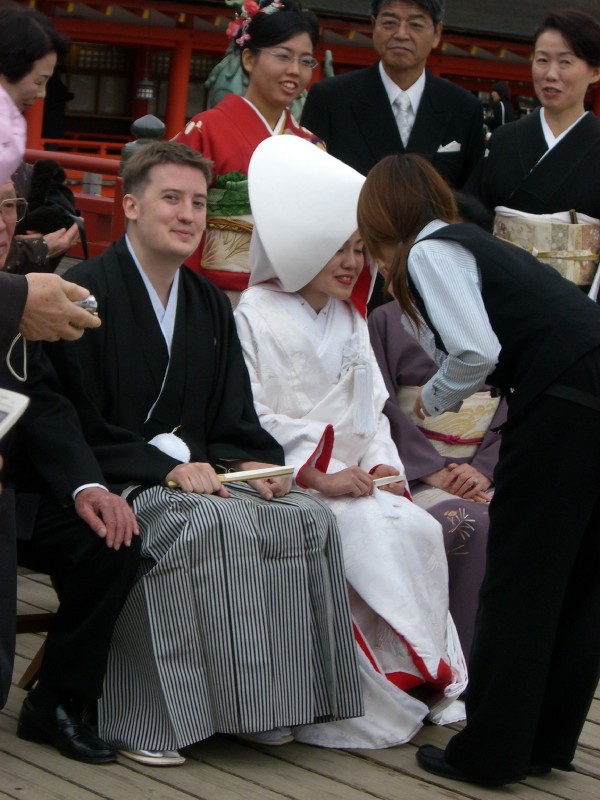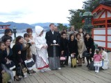 So here's a picture of me and Chie just after changing into our traditional Japanese wedding costumes, standing on the decks (if that's the right word?) of Itsukushima shrine.