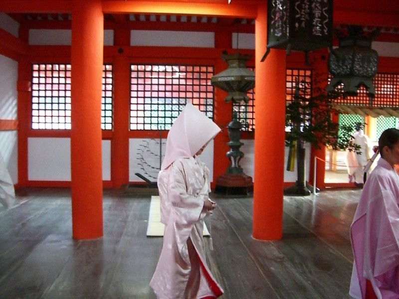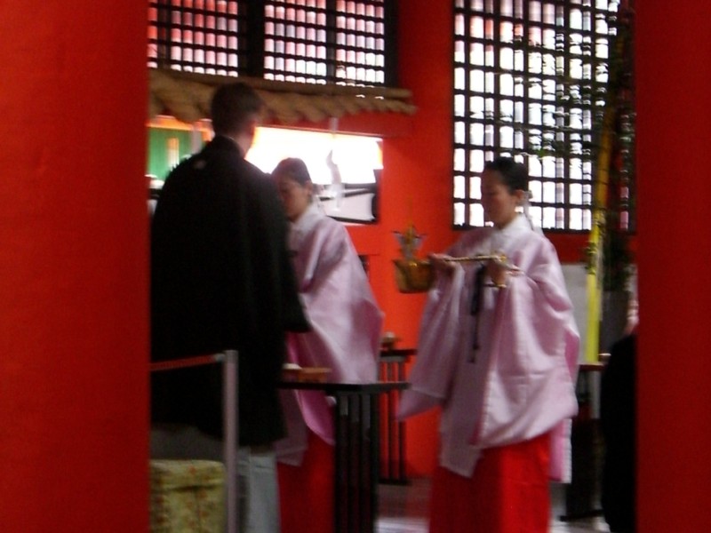 There follow a few pictures taken during the Shinto ceremony itself - I gave my camera to David who had a bit of a hard time getting a good place to see from! So anyway, here's me entering the ceremony room.