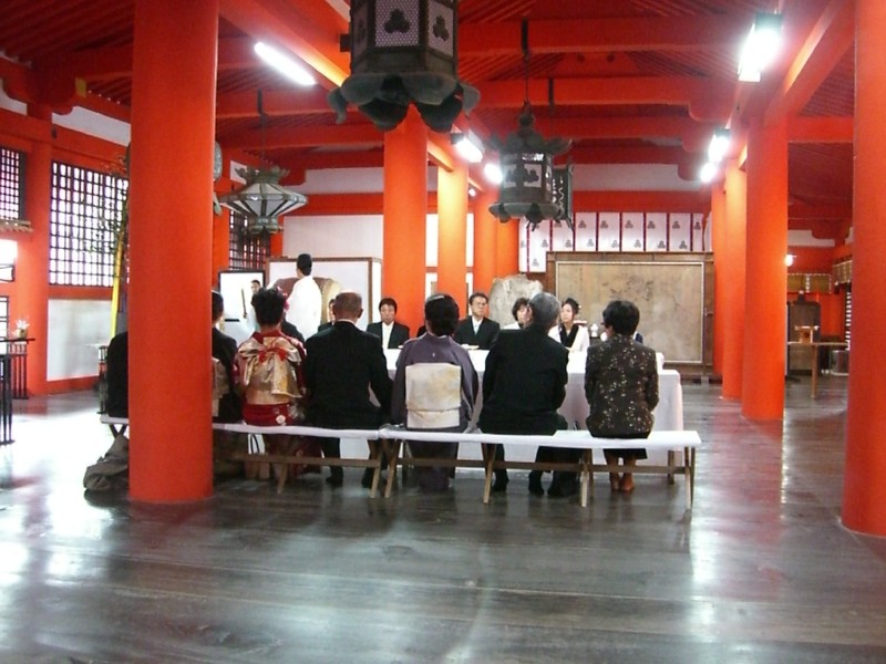 Here we're standing at the front reading out the Shinto equivalent of wedding vows.