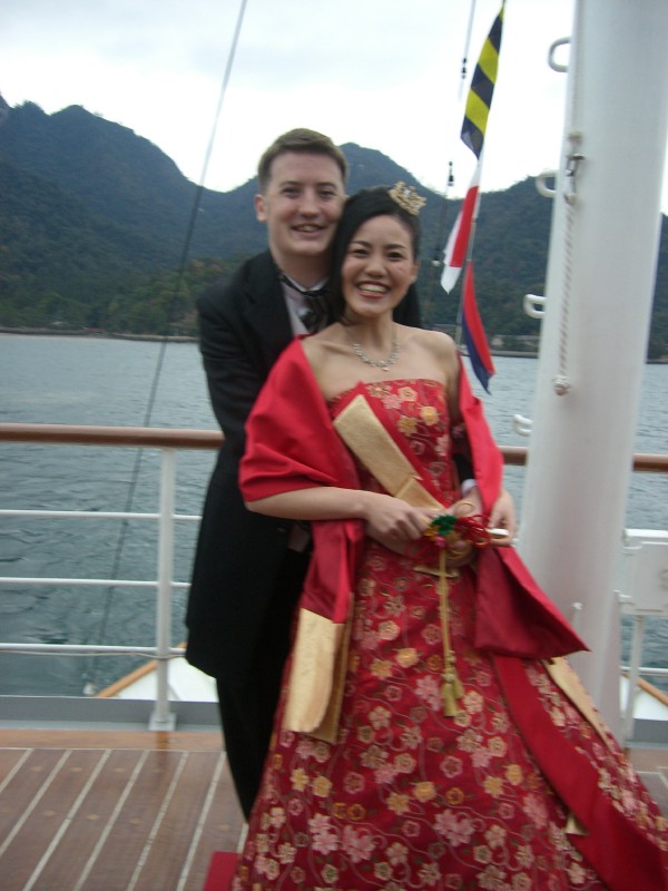 Me and Chie on the decks, in our second set of costumes (very typical for a Japanese wedding).