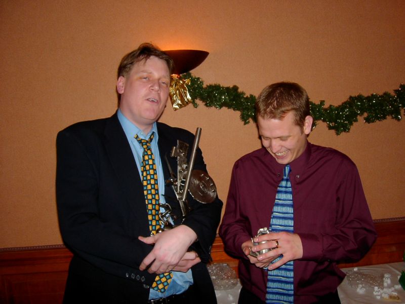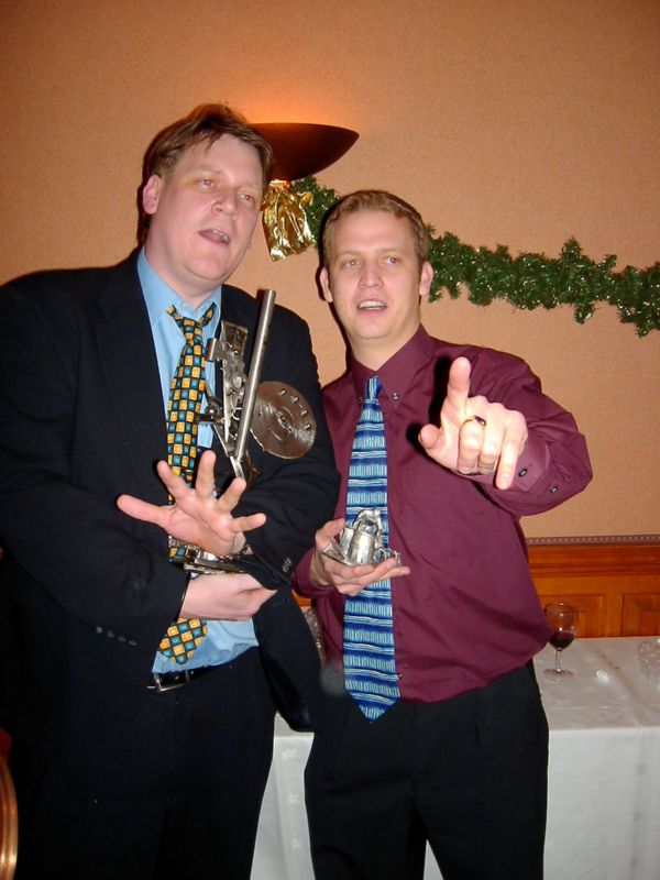 21:46:33 Just after the somewhat bungled awards ceremony, Mike and Jim enjoying their trophies, after they finally get to their rightful owners... |